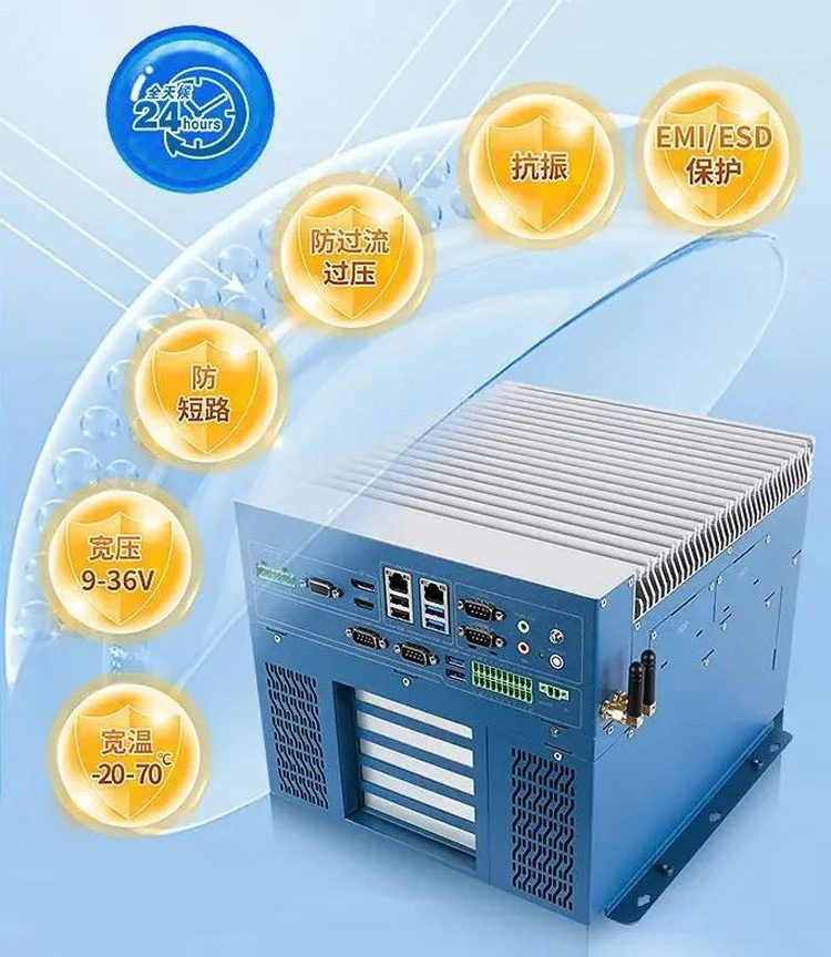 Z系列工控機遵循工業(yè)級設(shè)計標(biāo)準,支持寬溫(-20 - 70°C)、寬壓(DC 9-36V)運行,通過過壓過流、防短路、抗振和EMI/ESD等保護,全面保障產(chǎn)品安全可靠,適應(yīng)工業(yè)嚴苛環(huán)境。