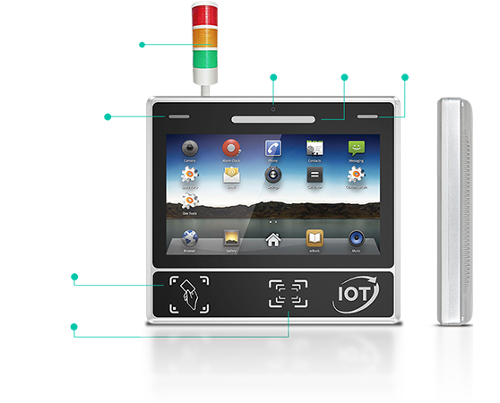 整機鋁合金一體打造,采用自主研發主板,功耗低,能保證在惡劣環境下長時間穩定工作,可升級IC卡識別、二維碼、掃描槍、報警燈、HDMI輸入模塊等,擴展性、適應性佳,滿足SOP、任務瀏覽、設備管理、缺陷登記、異常報警等功能,廣泛應用于智慧工廠、智慧食堂、智慧校園、智慧會議預約等場所。